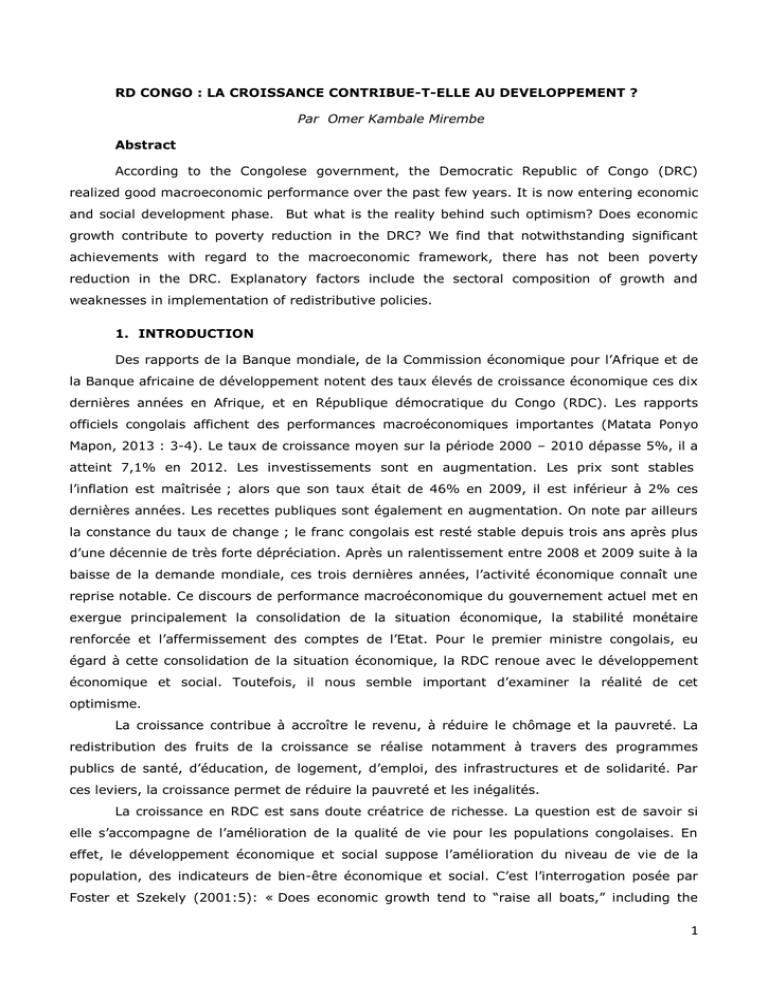 à la croissance et donc à la réduction de la pauvreté. Pour plusieurs pays, on évoque également