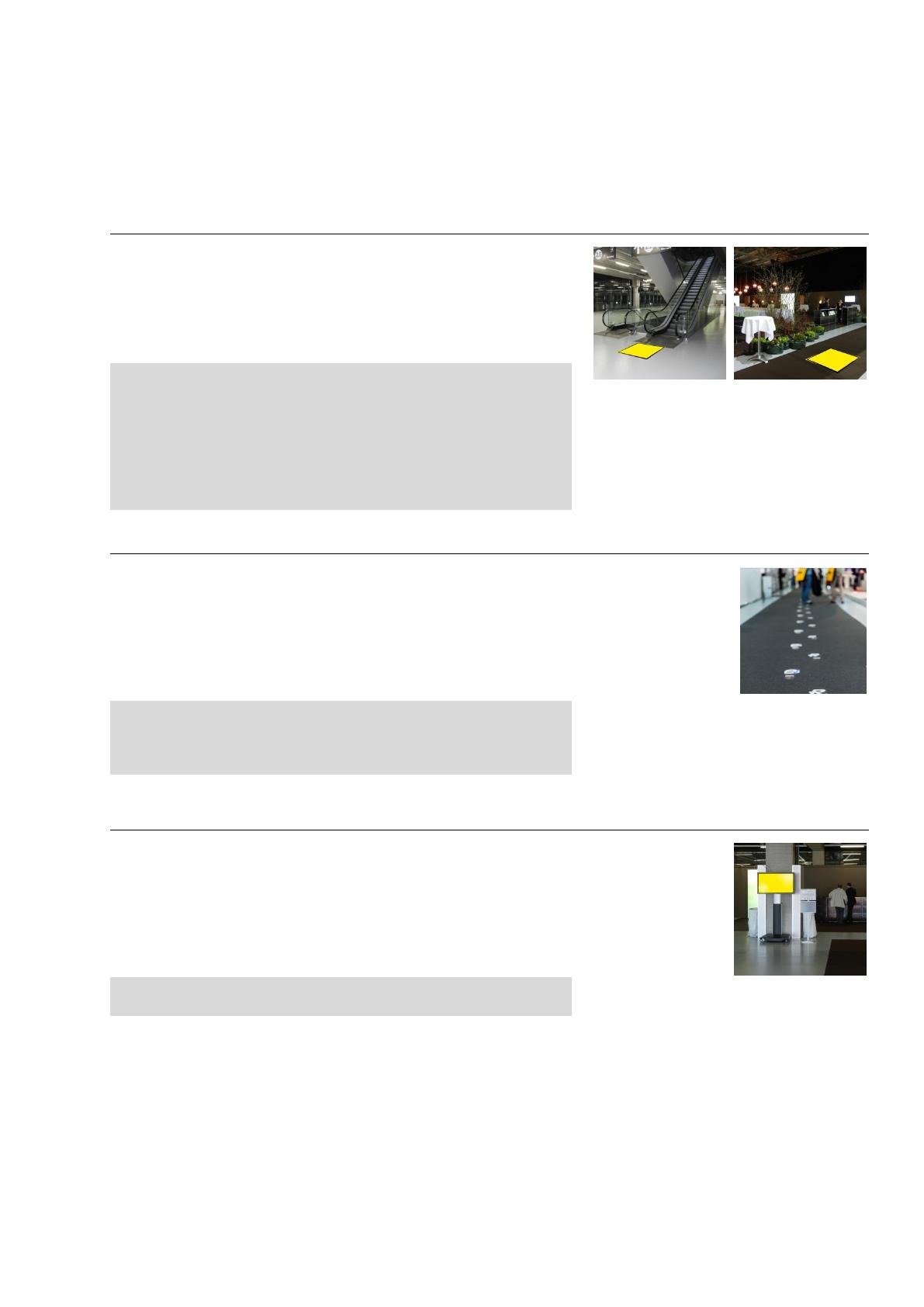 Emplacement À l’entrée de la halle et à des endroits fréquentés dans la halle