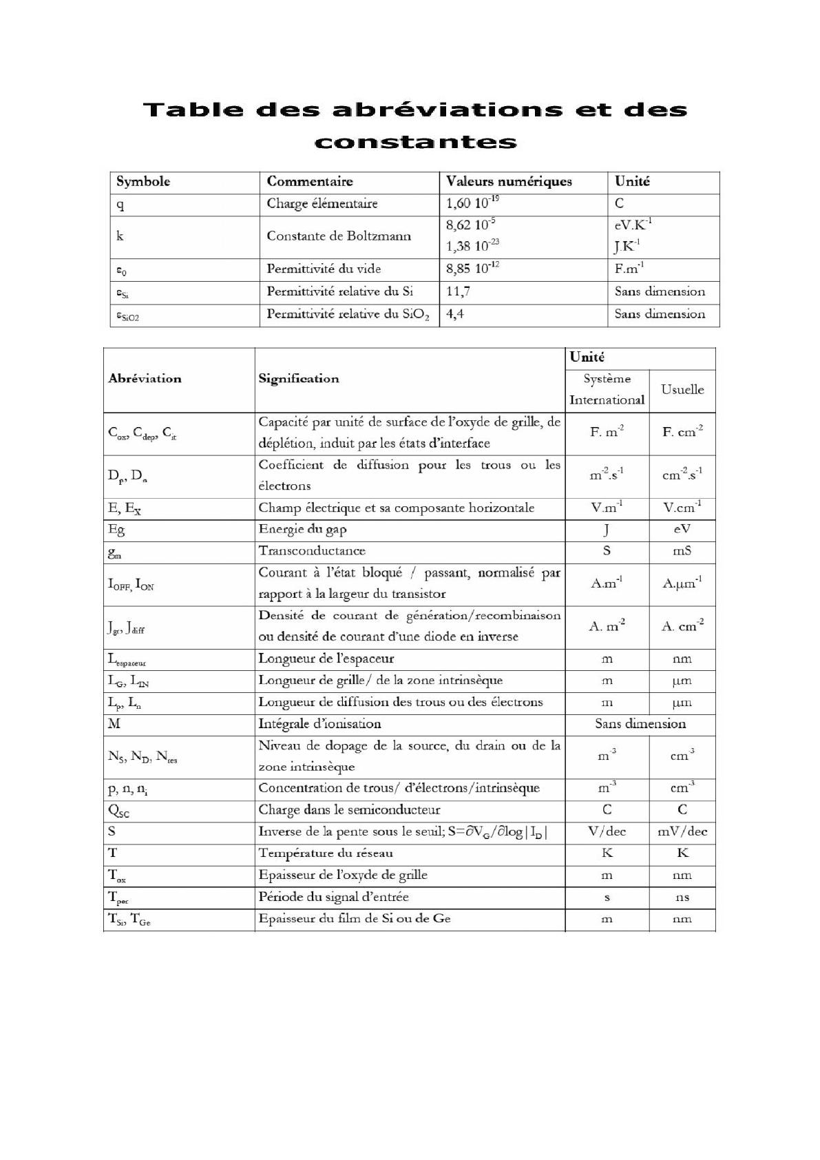 Etude des Effets Indésirables dans les Transistors MOSFETS à