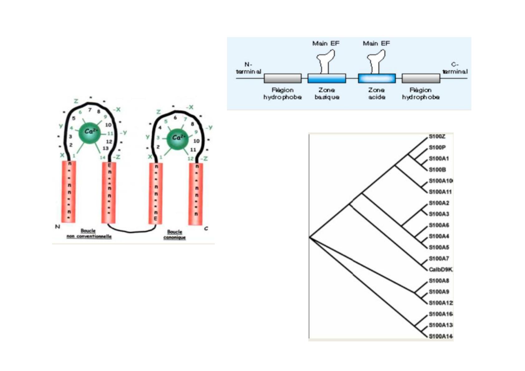 ~ intracellulaire : fixation du calcium <-> interaction avec protéines comme: