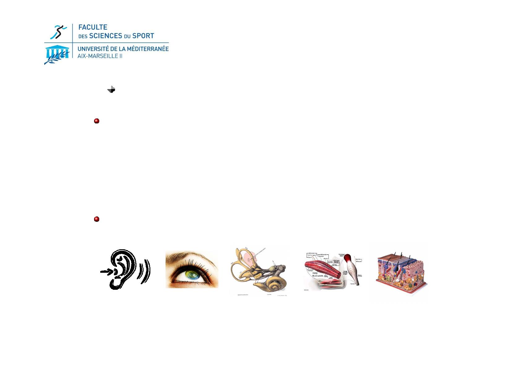 Informations (auditives), visuelles, vestibulaires, proprioceptives et tactiles.