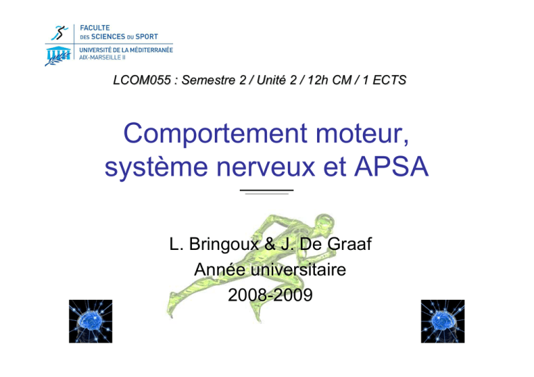 L Bringoux – J De Graaf – COM055 – Comportement moteur, système nerveux et APSA