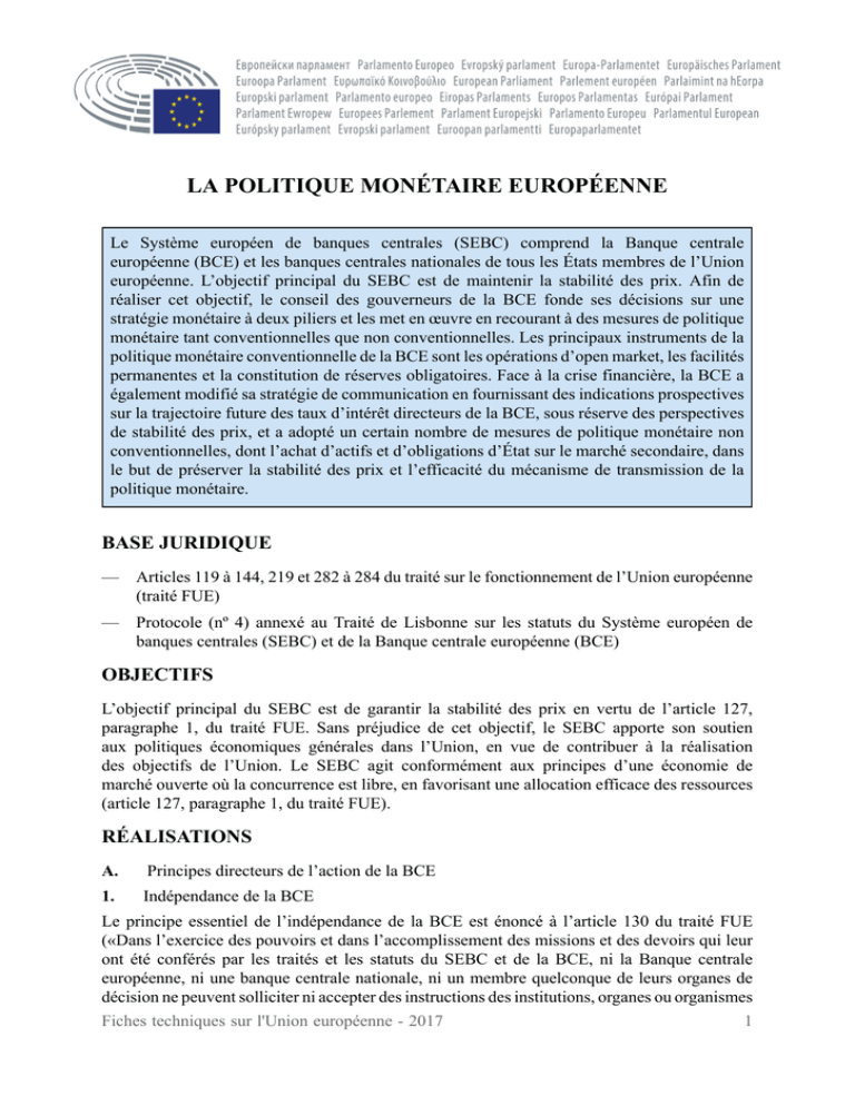 auprès des banques centrales nationales. L’objectif des réserves obligatoires est de stabiliser