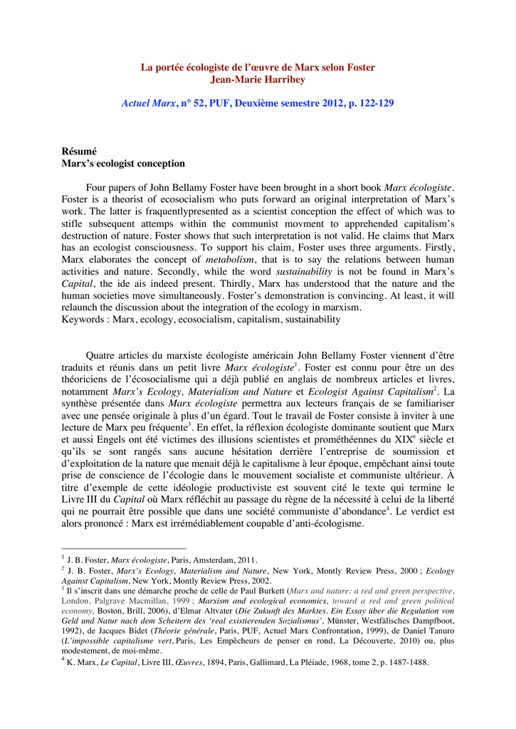 laquelle est un non-sens absolu.24 Du côté écologiste, certains travaux ont essayé de fonder