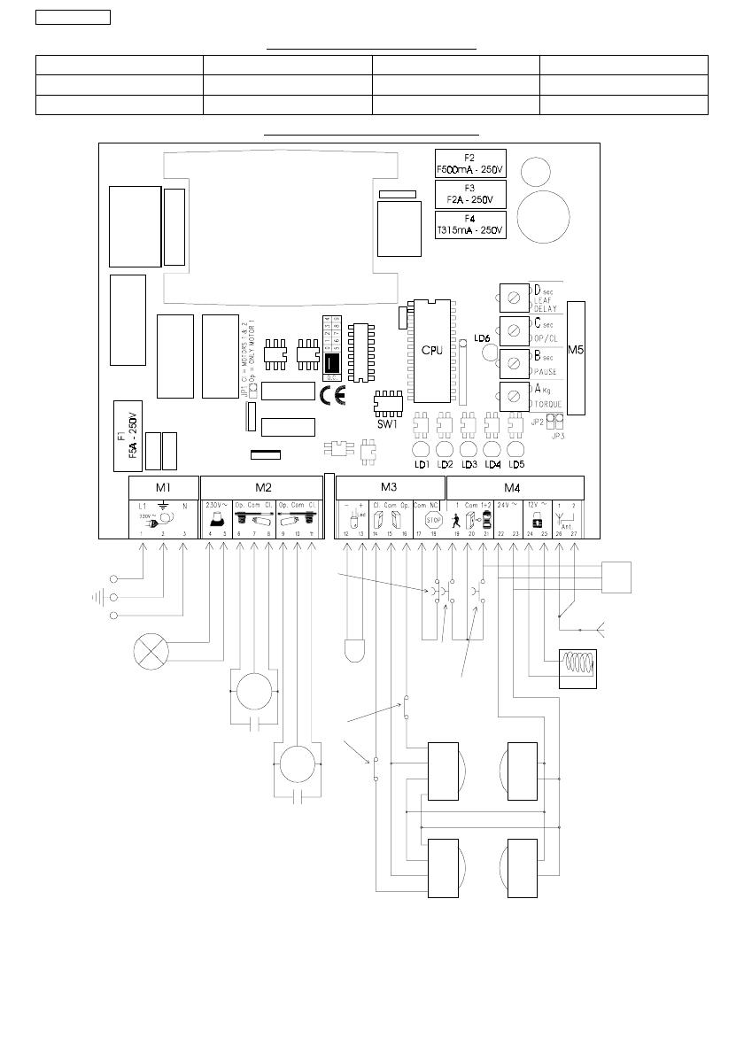 Suivant le type de portail (1 vantail ou 2 vantaux), enlever le cavalier JP1 comme suit: OP = (Circuit ouvert) moteur 1
