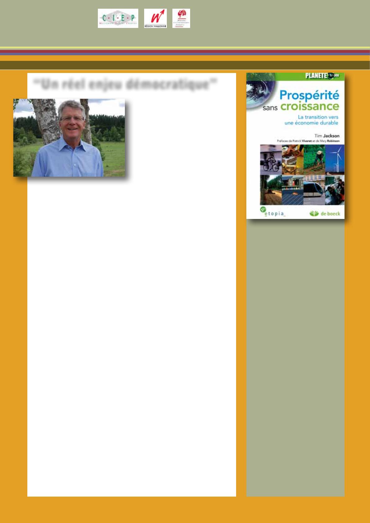 6 Jackson, T., “Prospérité sans croissance. La transition vers une économie durable”, coédition De Boeck - Etopia, 2010, 250p.