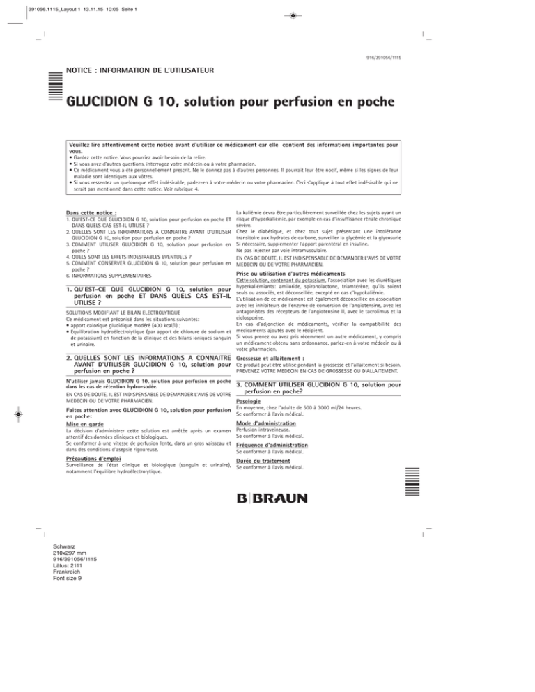 Faites attention avec GLUCIDION G 10, solution pour perfusion