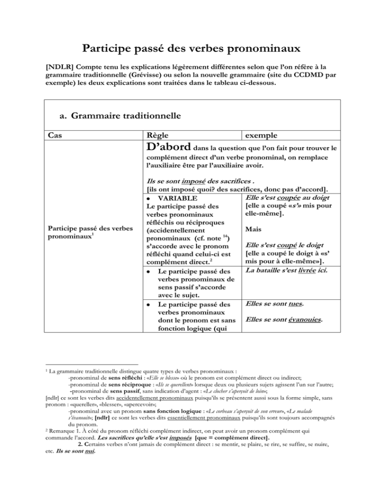 grammaire traditionnelle (Grévisse) ou selon la nouvelle grammaire (site du CCDMD par
