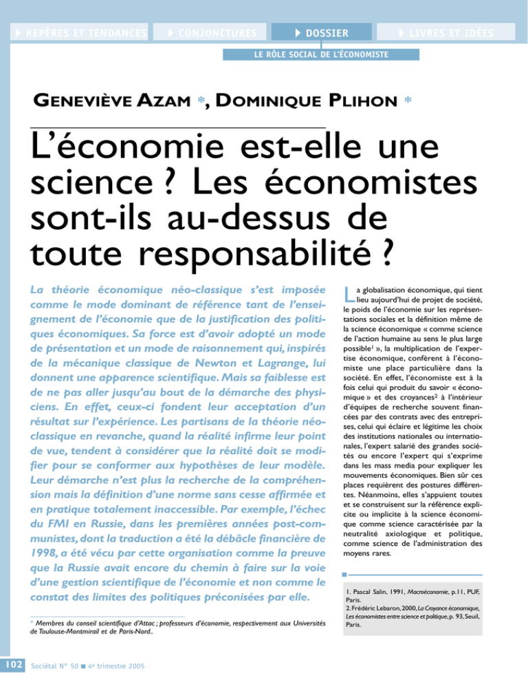L’ÉCONOMIE EST-ELLE UNE SCIENCE ?