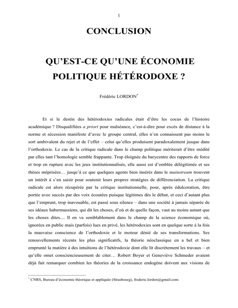 succès. A son grand dam, l’hétérodoxie voit donc les unes après les autres ses « choses »