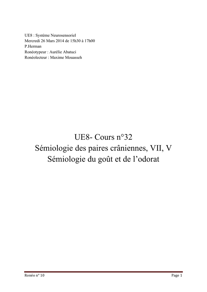 premier neurone operculaire sur les noyaux du facial supérieur, dans la protubérance) : on ne