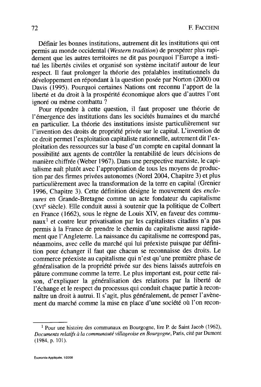 agents. Fidèle aux travaux de D.C. North (1994, 1998) il s'agit de tenir