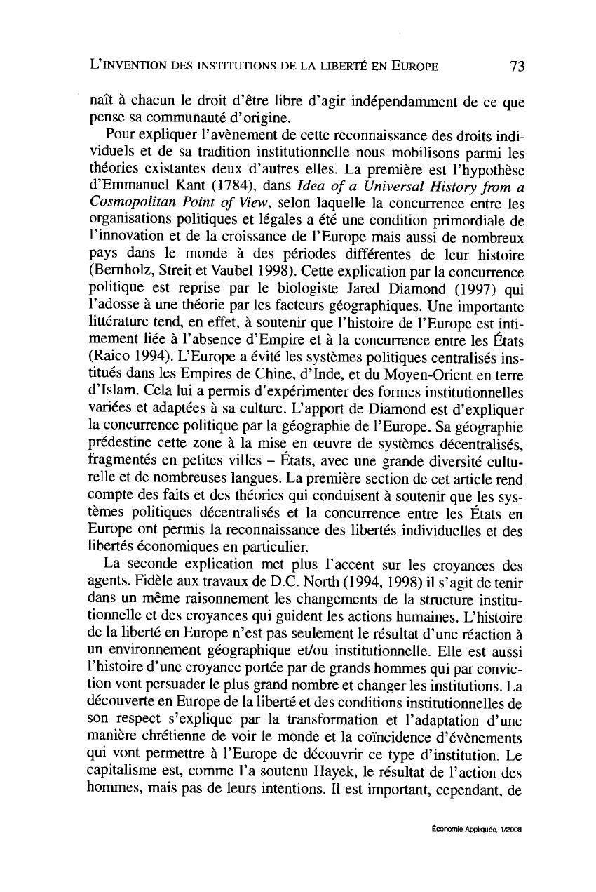 littérature tend, en effet, à soutenir que l'histoire de l'Europe est inti-