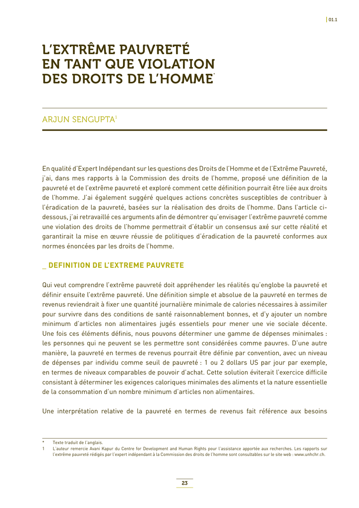 2 Rapport de Leandro Despouy, Rapporteur spécial sur les droits de l’homme et l’extrême pauvreté, E/CN.4/Sub.2/1996/13, disponible sur le