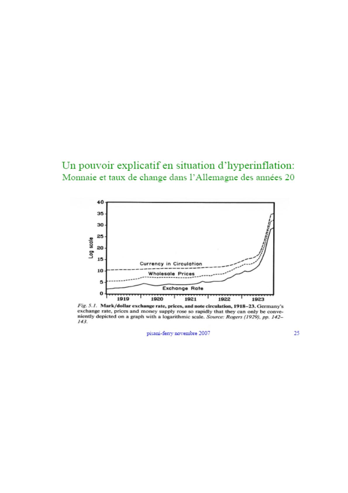 • Mais elle ne permet pas de rendre compte des mouvements du change en situation d’inflation faible ou