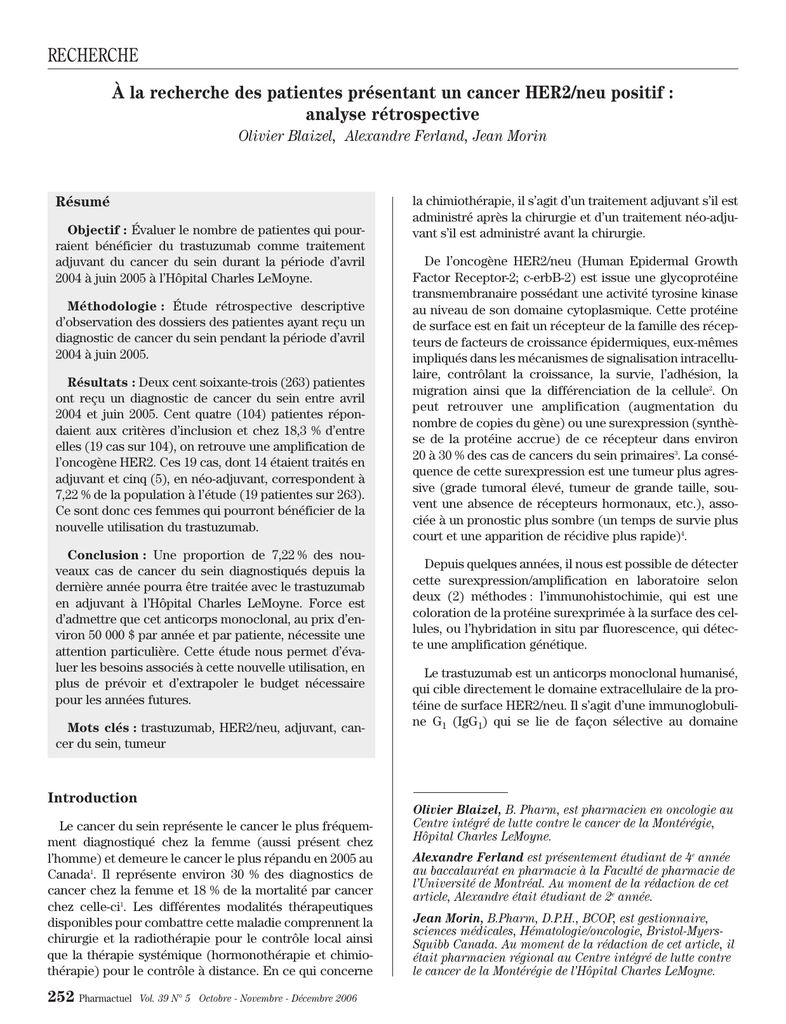 Pharmactuel Vol. 39 N° 5 Octobre - Novembre - Décembre 2006