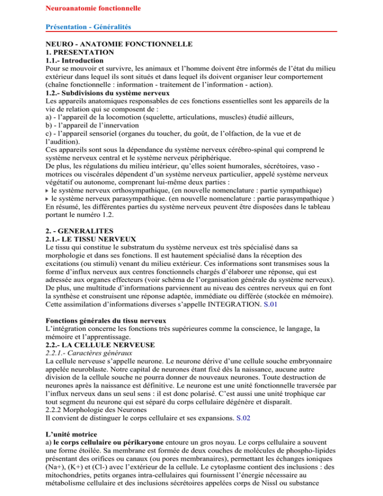 2.4. - LES ORGANES NERVEUX : STRUCTURE ET REPARTITION DU TISSU