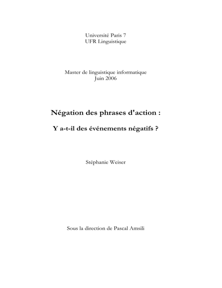 2. Que se passe-t-il quand une phrase d'action est niée ?................................... 20