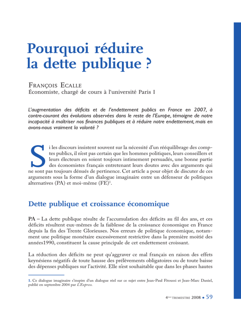 et H. Sterdyniak, «Doit-on oublier la politique budgétaire?»,revue de l’OFCE,2005 ;etF. Ecalle, Maîtriser les