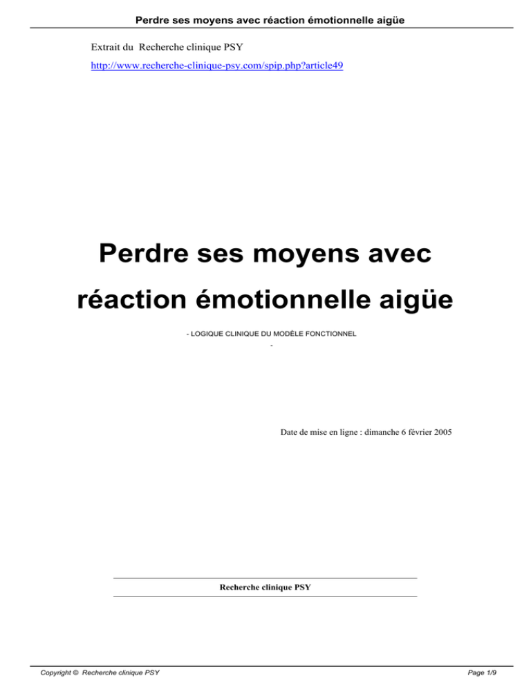 Perdre ses moyens avec réaction émotionnelle aigüe