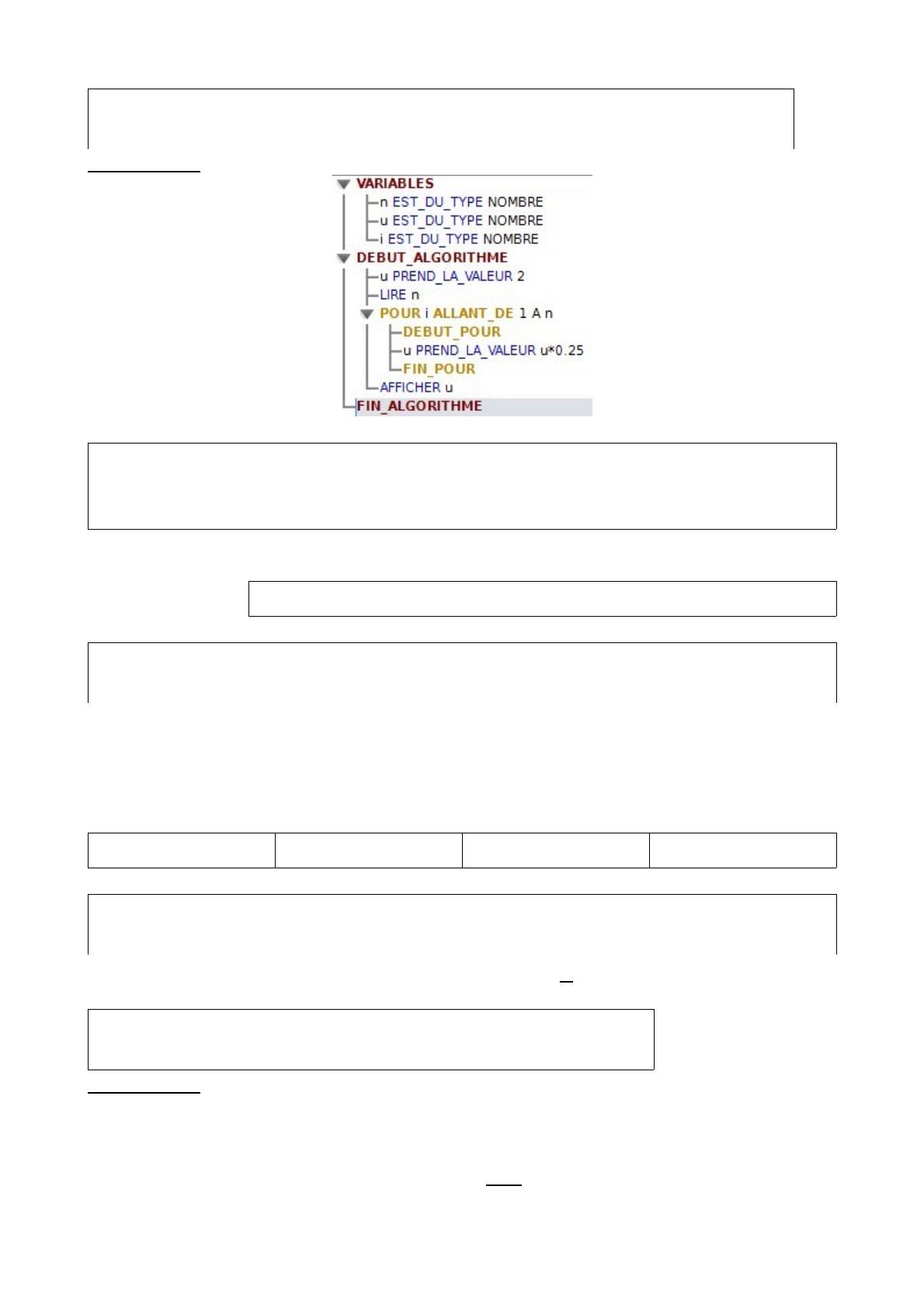 2) Programmer cet algorithme sous Algobox et tester-le pour n = 10, puis pour n = 30