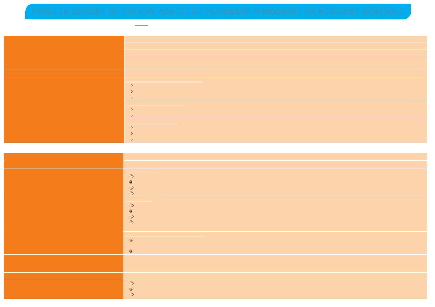 S’appuyer sur un plan d’évaluation, un agenda du sommeil, l’arbre décisionnel (HAS - décembre 2006).