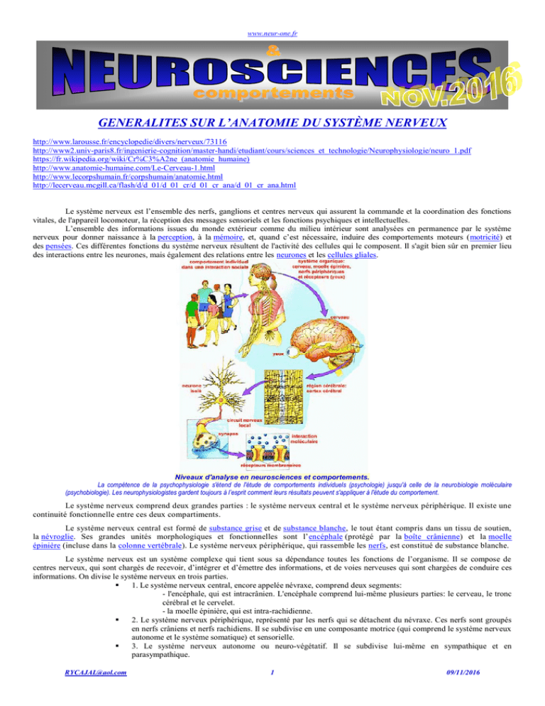 psycho-moteurs, ainsi que de nombreuses connexions qui relient ces centres entre