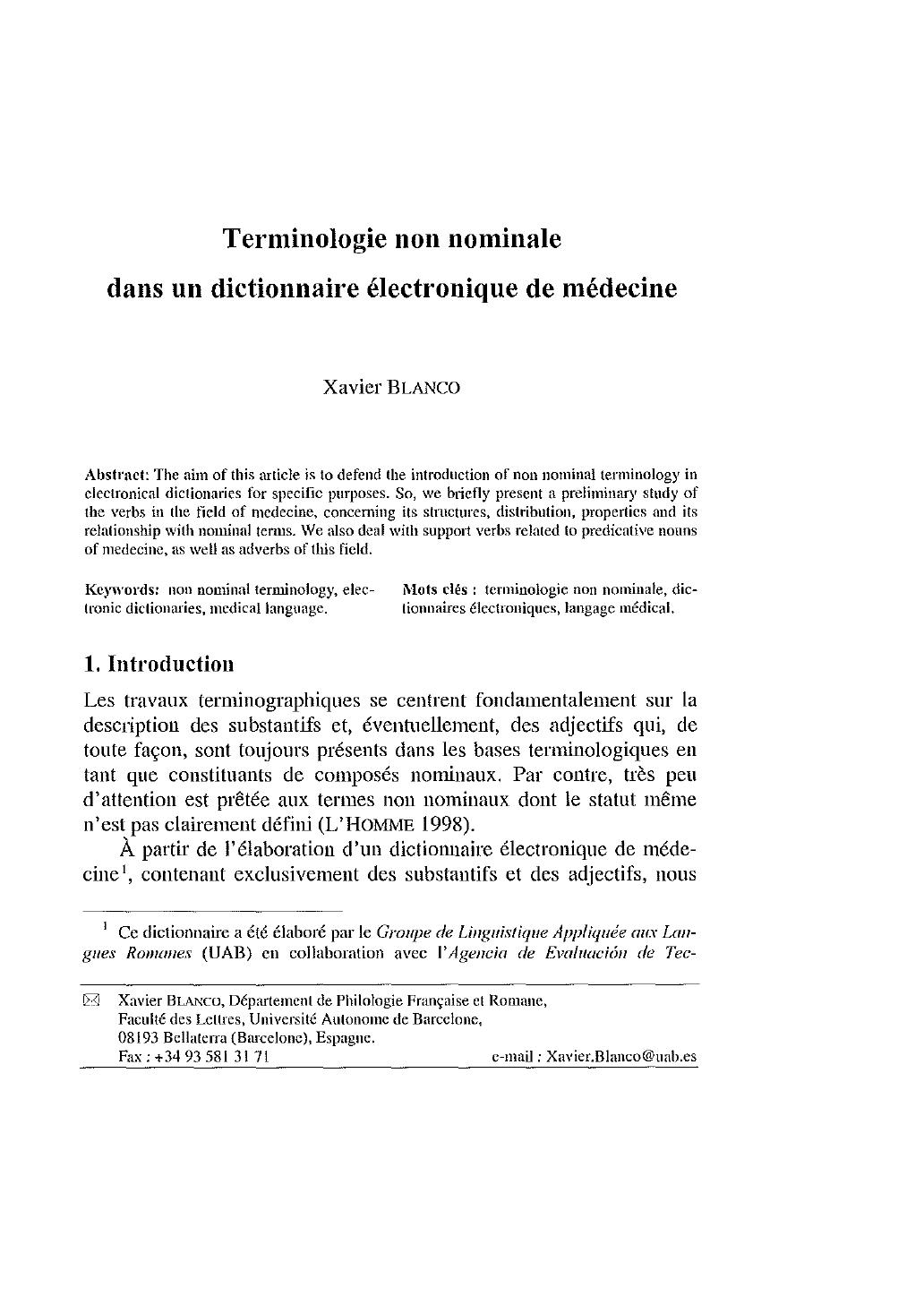 TERMINOLOGIE NON NOMINALE DANS UN DICTIOI\'NAIRE DE I