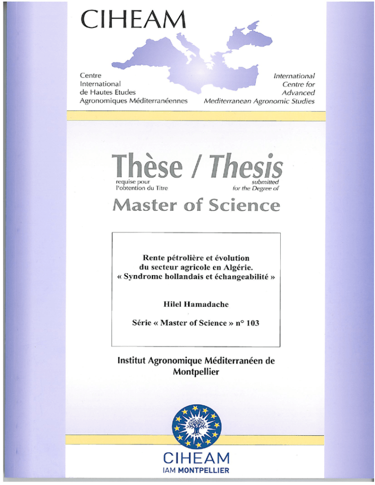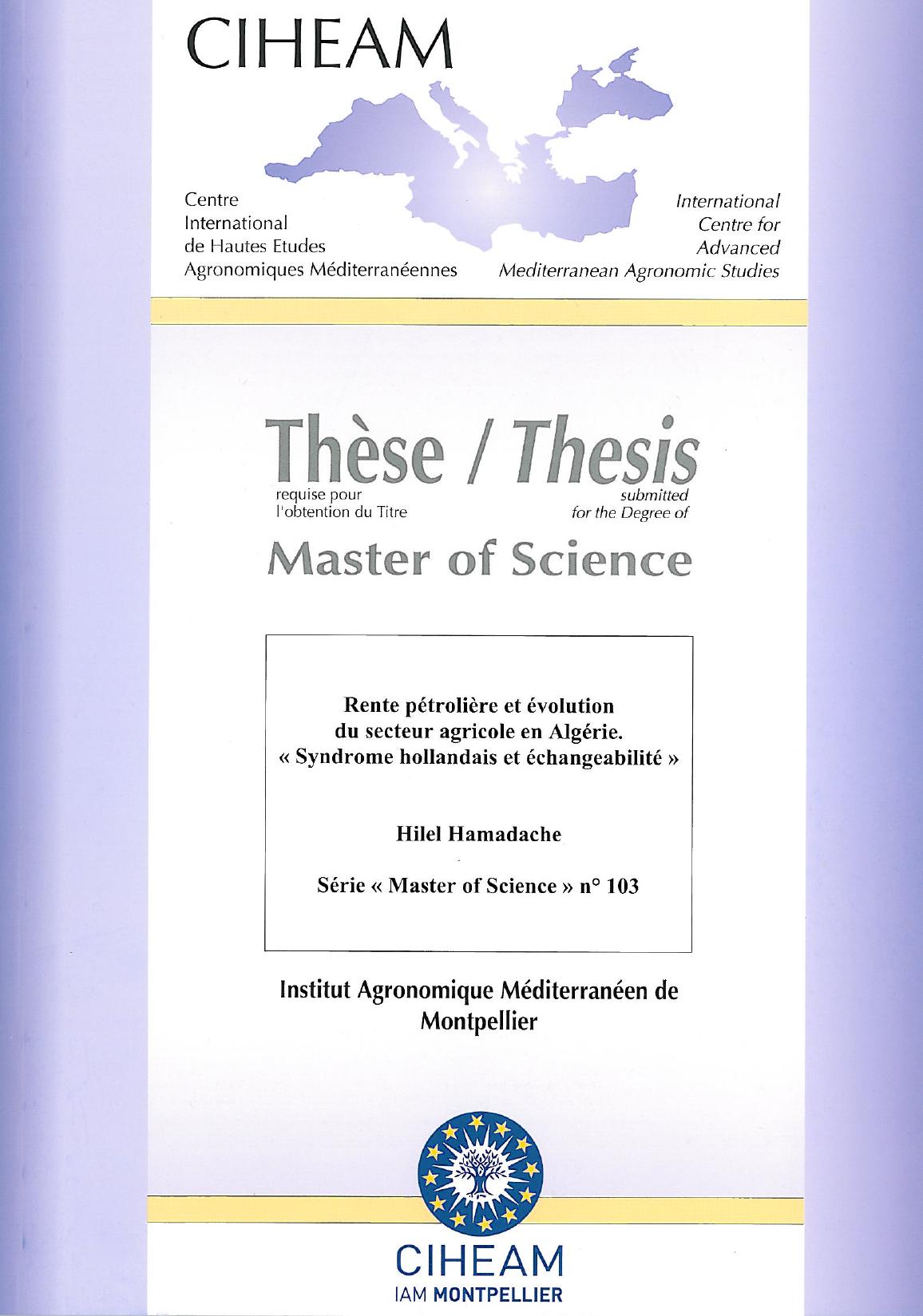 Ce Master est le numéro 103 de la série Master of Science de l’Institut Agronomique Méditerranéen de