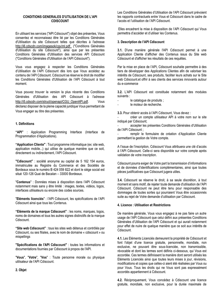Web Cdiscount, aux Conditions Générales d'Utilisation de l’API