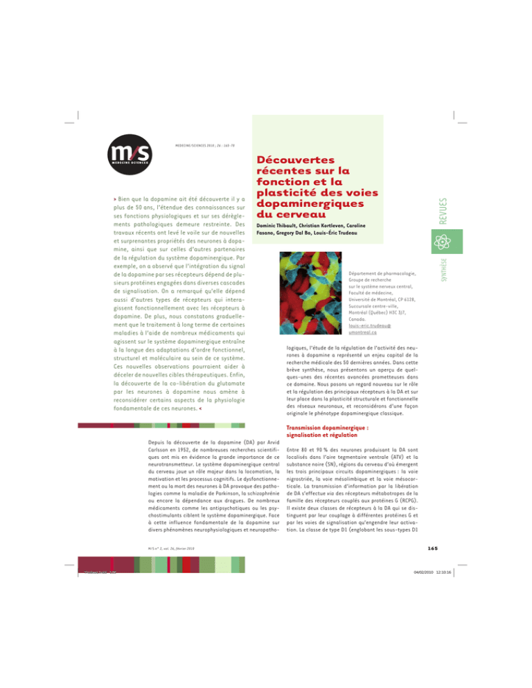 tivité des récepteurs à la DA. Par exemple, les symptômes de la schi-