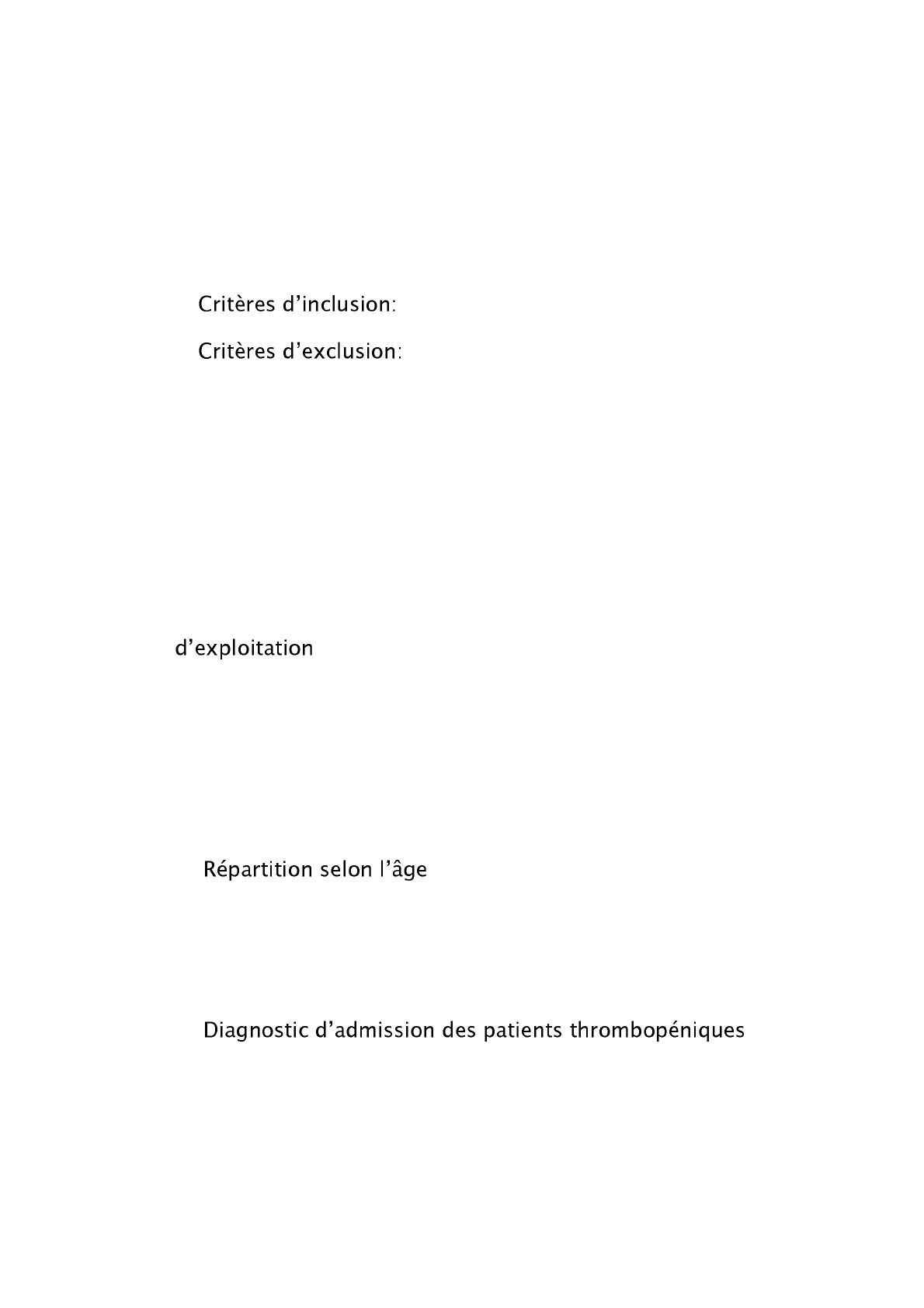 II. Caractéristiques de la thrombopénie: