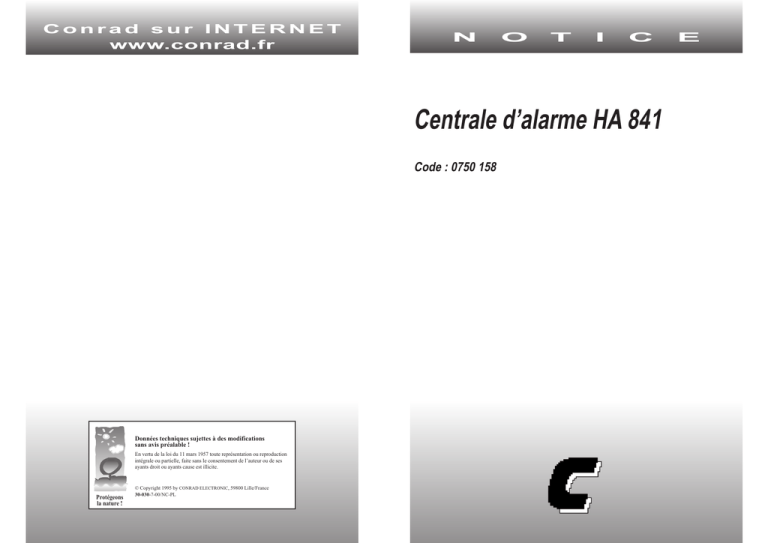 • La centrale d’alarme HA-841 est conforme aux directives 89/336/CEE et dispose du sigle CE.