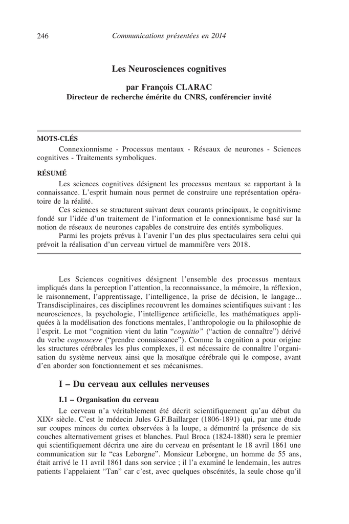 manuscrit à l’Académie de médecine, un peu avant les résultats de Broca. Il faisait