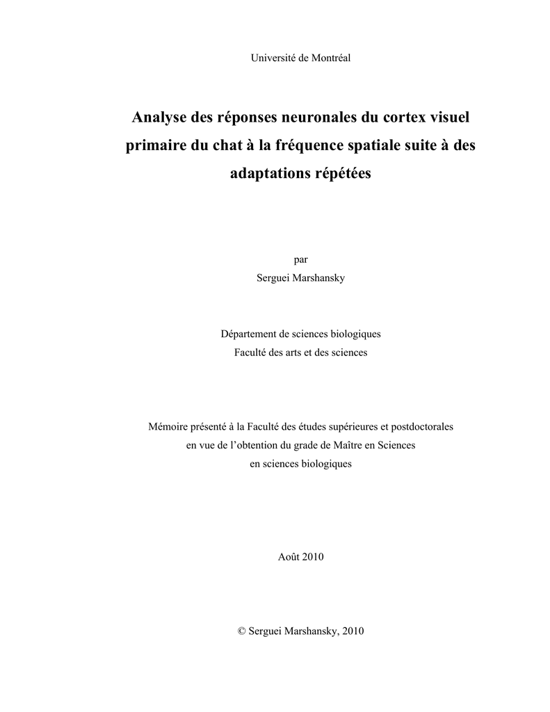 1.3 — Plasticité à court terme dans le cortex visuel primaire .......................................... 12!