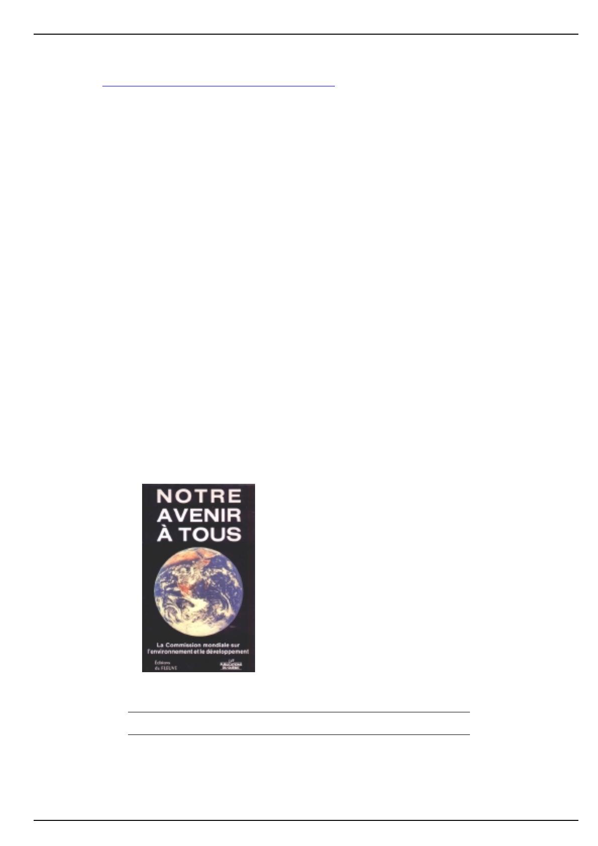Brundtland est plus que jamais d'actualité. Le lecteur qui voudra approfondir la réflexion pourra consulter les «