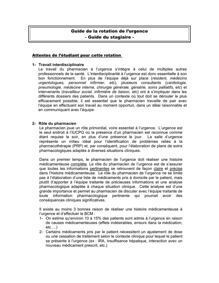 l’AVC avant ou dès le début de la rotation. Le pharmacien superviseur n’enseignera
