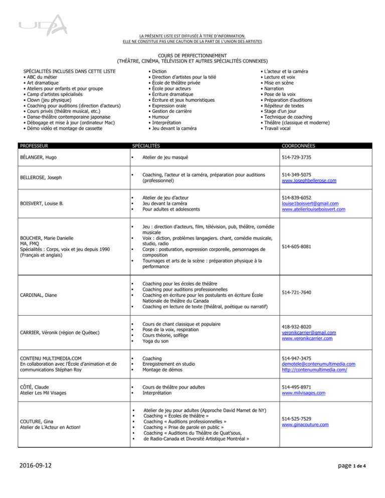 LAPRÉSENTELISTEESTDIFFUSÉEÀTITRED’INFORMATION.
