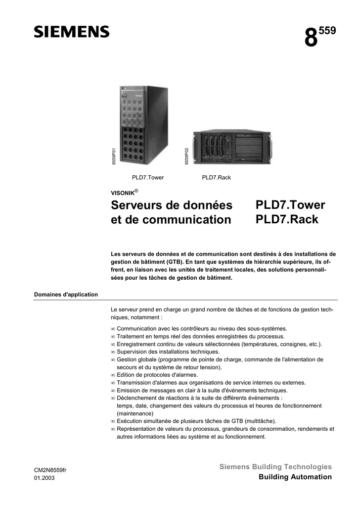 Siemens Building Technologies Serveurs de données et de communication PLD7… CM2N8559fr
