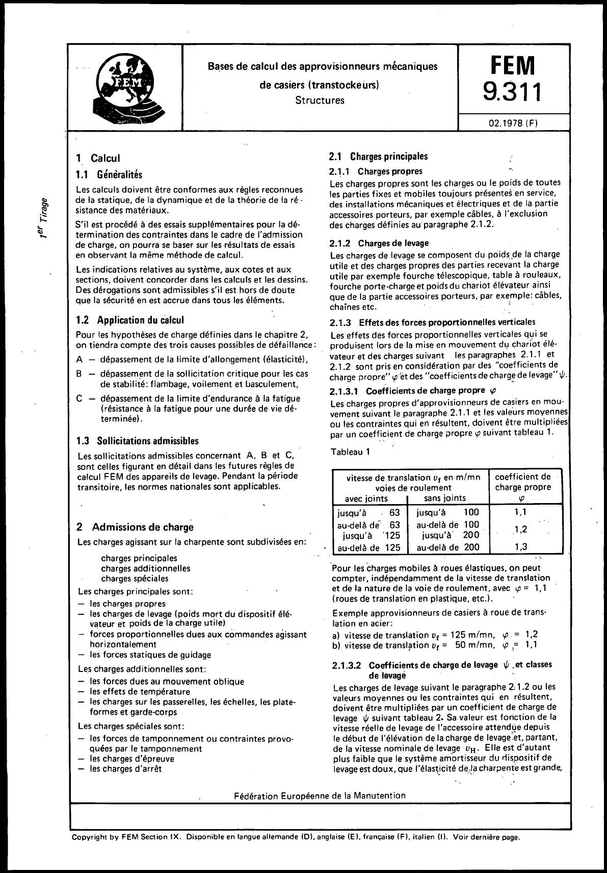 Pour les charges mobiles àroues élastiques,