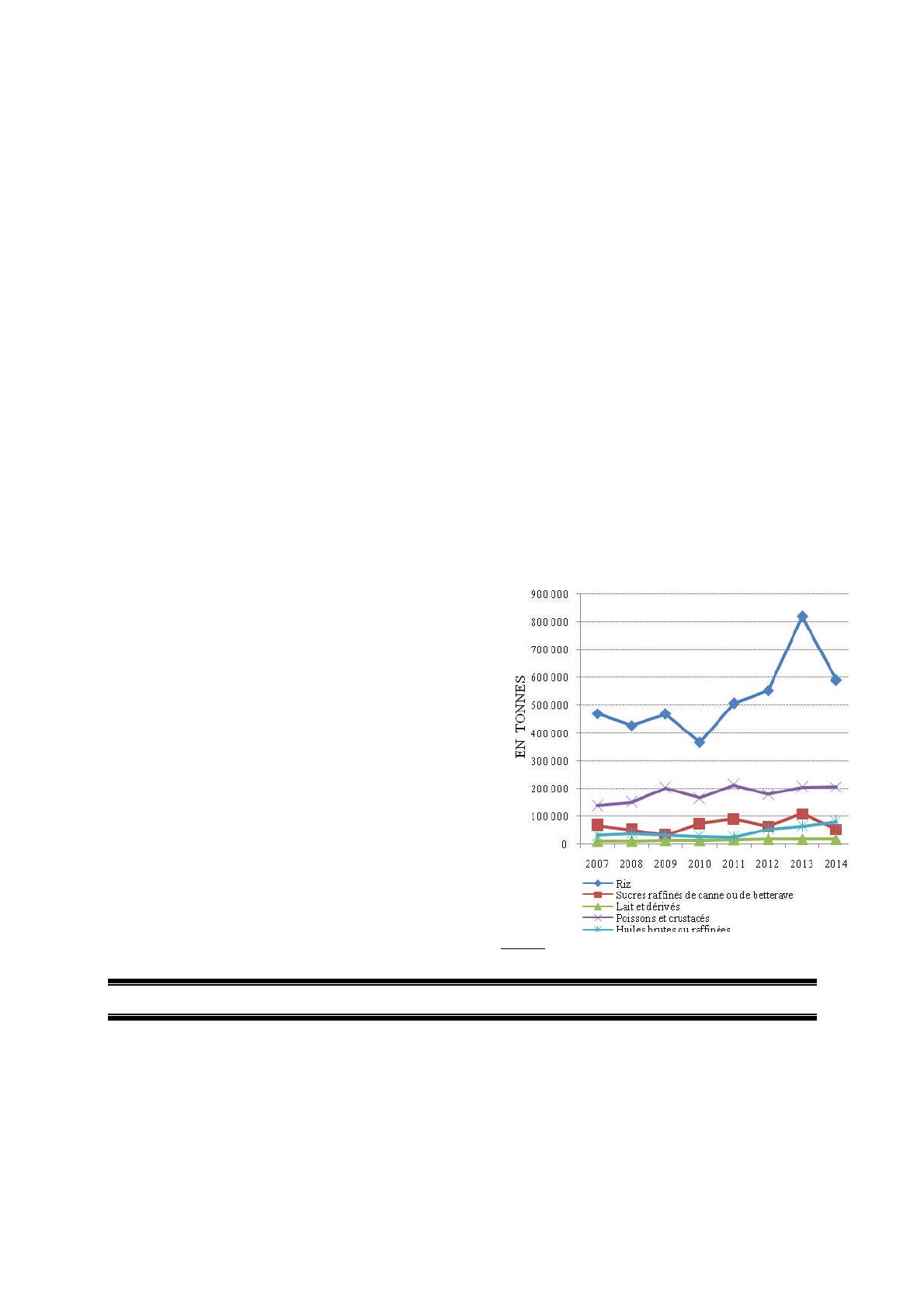 poissons congelés, céréales, sucres et riz) par