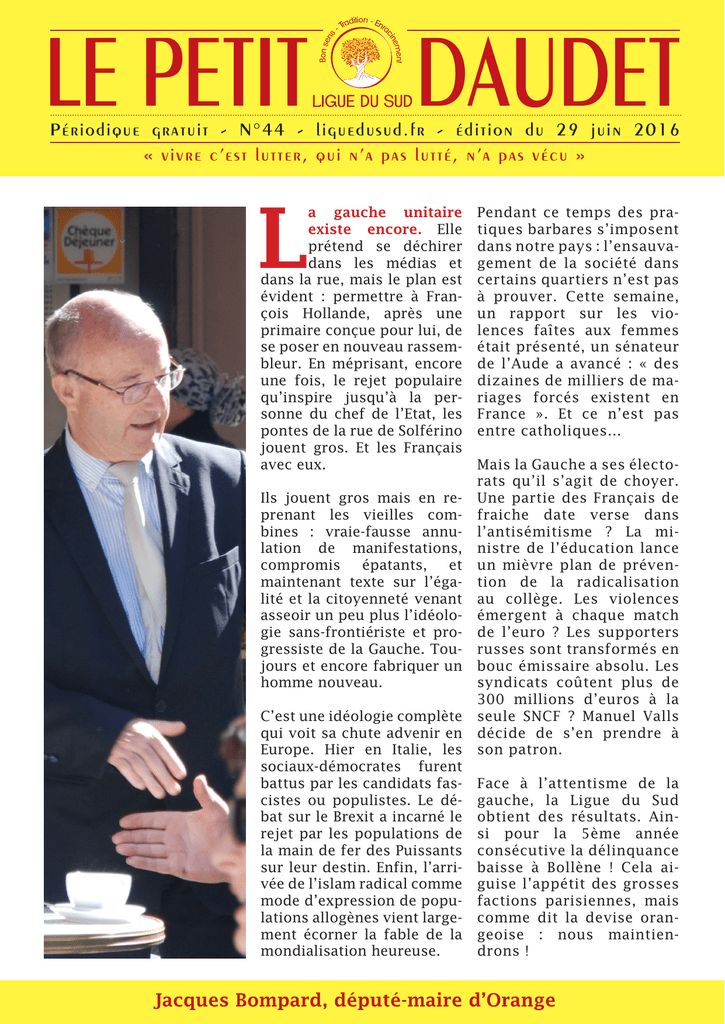 ❏ J’adhère à la Ligue du Sud pour l’année 2016