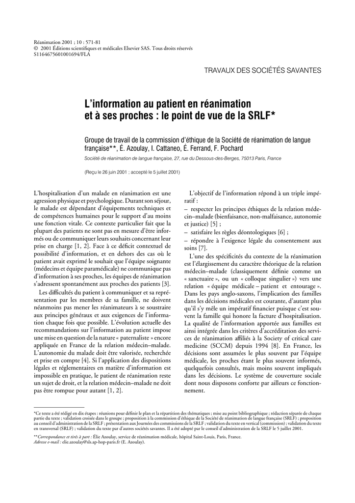3 mars 1998). Par ailleurs, le patient doit être informé