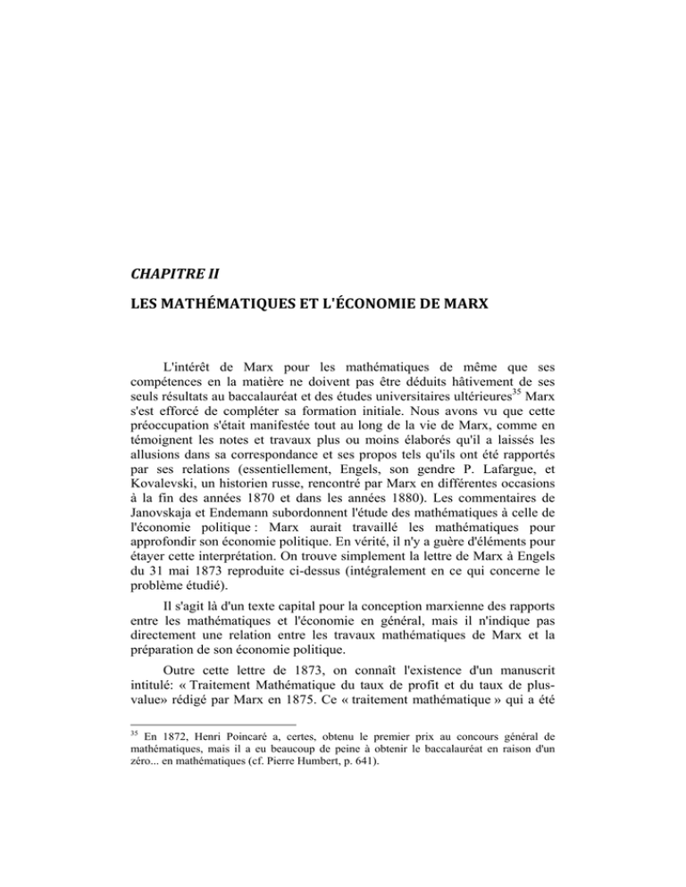 les mathématiques étudiées par Marx apparaissent particulièrement