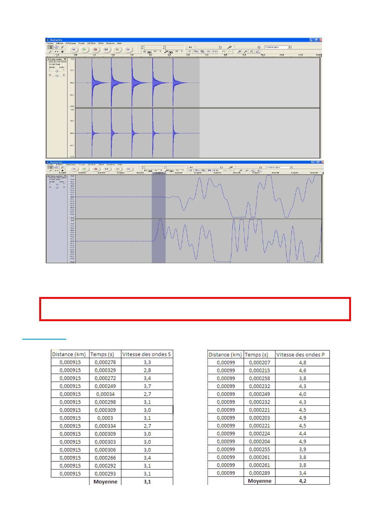 On a utilisé Audacity pour déterminer la vitesse des ondes S et P :