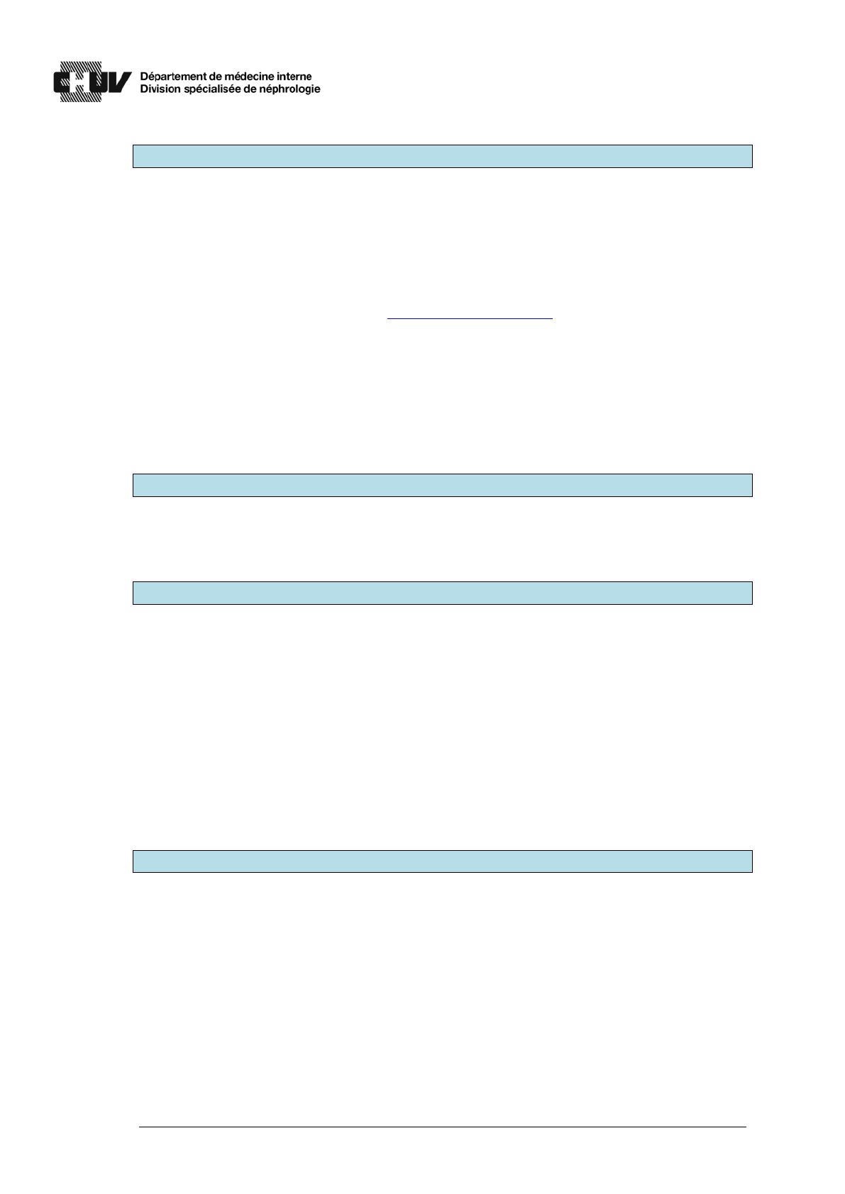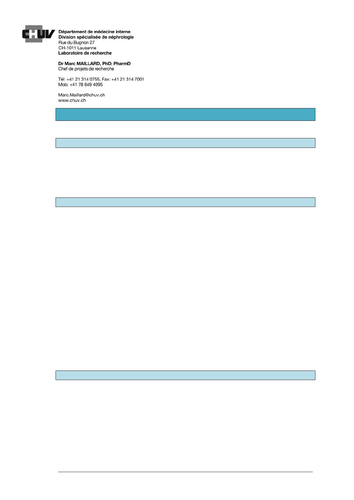 Informations complémentaires disponibles auprès du Dr Marc Maillard, laboratoire de néphrologie, 021 314 0755