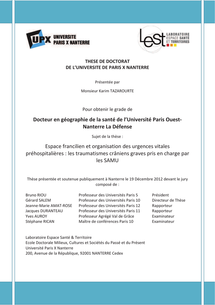 Docteur en géographie de la santé de l`Université Paris Ouest