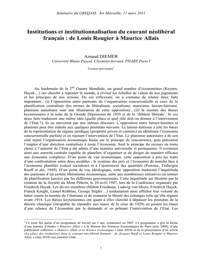 économie libérale est parmi les éventualités possibles. Aux yeux de Rougier, l’histoire aurait