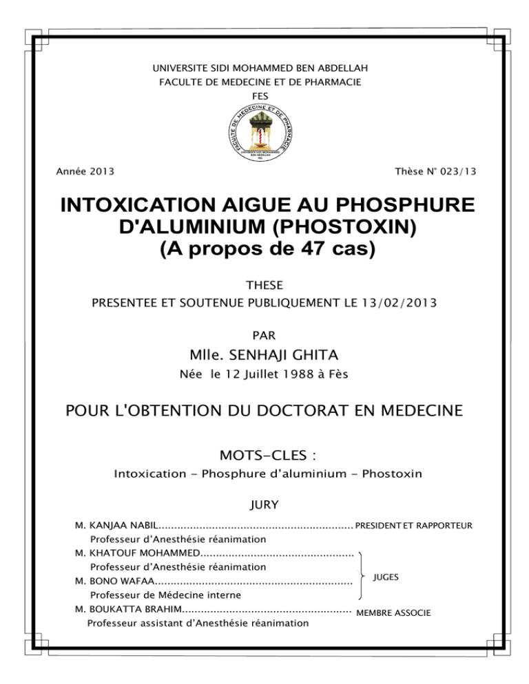 8. Complications associées à l’intoxication au phostoxin : .............. 38