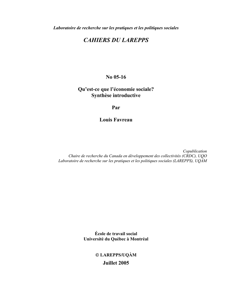 et un autre qui s’est inspiré des travaux de ce réseau (Favreau et Fréchette, 2002).